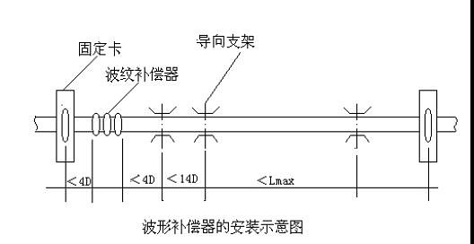 固定支架的距離:固定支架應(yīng)根據(jù)補(bǔ)償器的類型和管道的設(shè)計(jì)壓力確定,以承受補(bǔ)償器的推力和管道的重量。